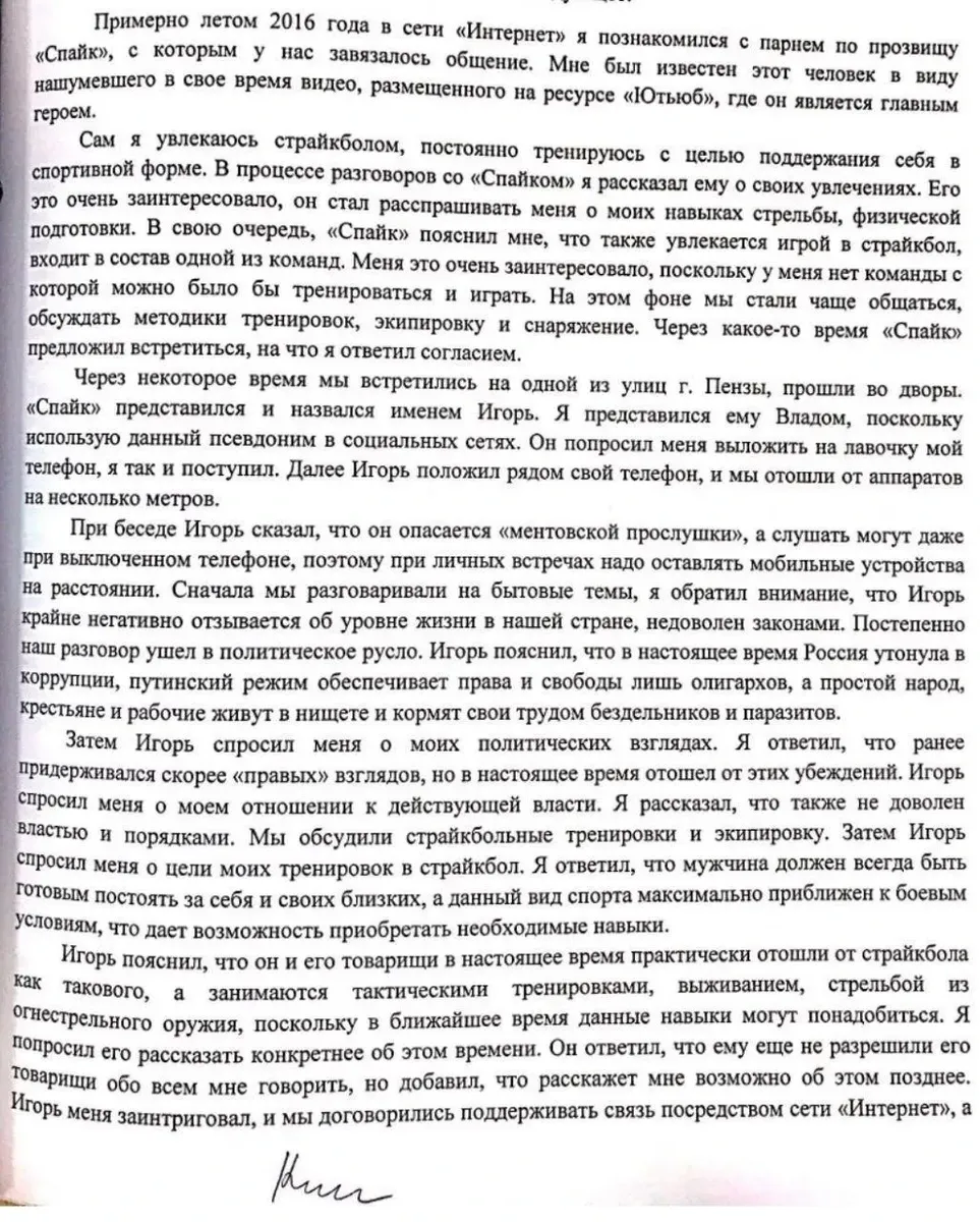 Примечательно, что в чате участники рассуждали, как им себя обезопасить, чтобы к ним не внедрился какой-нибудь «эшник». По иронии судьбы, именно эта переписка оказалась в руках «провокатора», а в чате действительно «сидели» оперативники из Центра по противодействию экстремизму. Как минимум двое — Максим Расторгуев и Юрий Испанцев. Они рассказывали в суде, что были внедрены в группу по заданию органов еще до возбуждения уголовного дела.