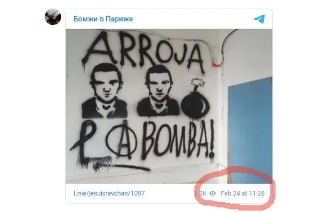 На втором фото — красноречивые граффити бомбистов. Крупнейшее в РФ анархистское сообщество «Народная самооборона» (канские ребята отношения к нему не имели) сыронизировало, что сибирских анархистов ФСБ задерживала на парижском сквоту. Действительно, этот снимок легко отыскивается в телеграм-канале «Бомжи в Париже», и опубликован он 24 февраля. Подростков задерживали летом.