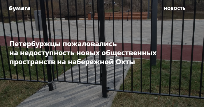 Об этом же в группе «Моя Малая Охта» во «ВКонтакте» сообщил еще один петербуржец — он отметил, что набережная огорожена забором с замком. Очевидец добавил, что был не единственным желающим осмотреть пространство.