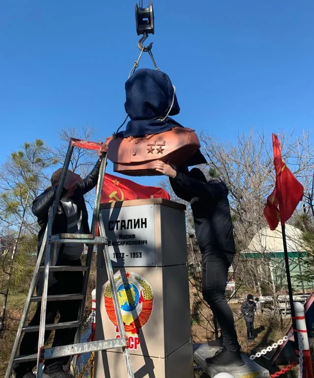 Так уж совпало, что в сотый день хабаровского протеста в селе Сосновка на выезде из Хабаровска открывали бюст Иосифа Сталина. Приглашала протестующих и журналистов туда Светлана, что в принципе неудивительно (это она рассказывала экс-чиновнику Чернышову про мировое правительство).