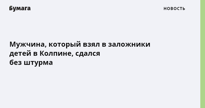 Мужчина, который захватил в заложники шестерых детей в квартире в Колпине, сдался без штурма. Об этом сообщает ТАСС со ссылкой на источник.