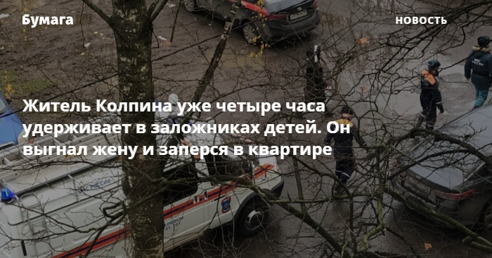 Житель Колпина уже четыре часа удерживает в заложниках детей