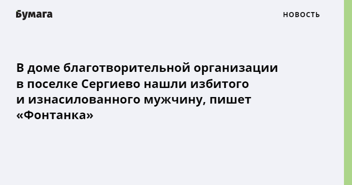 В поселке Сергиево Красносельского района в доме благотворительной организации обнаружили мужчину с многочисленными переломами ребер, рук и ног, гематомами на теле и травмой полового органа. Об этом сообщают «Фонтанка» и телеканал «78».