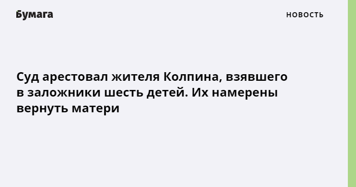Колпинский районный суд на два месяца арестовал Дениса Бельтюкова, взявшего в заложники шестерых своих детей. Об этом сообщает объединенная пресс-служба судов Петербурга.