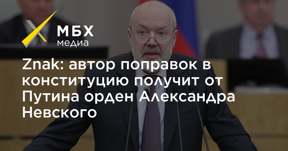 Znak: автор поправок в конституцию получит от Путина орден Александра Невского