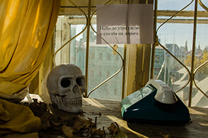 Большая сложность была в том, чтобы найти какие-то места и время, удобные и для нее, и для меня. Получилось снимать в два захода: первый раз снимали в культурном центре «Пунктум», а второй — буквально у меня на работе. «Череп» оба раза был один и тот же. Его нам дала Анастасия Ишова. Позже мы пробовали «череп» поменять, но у нас это так и не вышло. Наверное, это к лучшему.