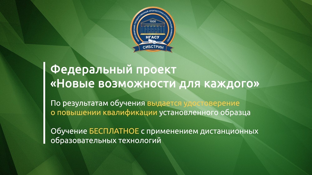 НГАСУ (Сибстрин) приглашает на бесплатное обучение по федеральному проекту «Новые возможности для каждого»