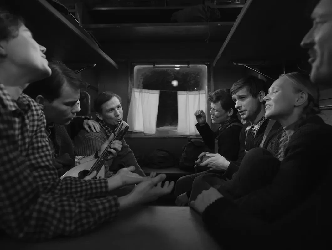 В другом флаконе четные серии. Черно-белые, с «советским» дизайном титров, другой музыкой, с другим — на удивление (где таких отыскали?) советским типажом героев, с прекрасной нашей молодежью, песнями у костра, любовью, дружбой и самопожертвованием. Типичное кино 50-х, кинобудка приехала.