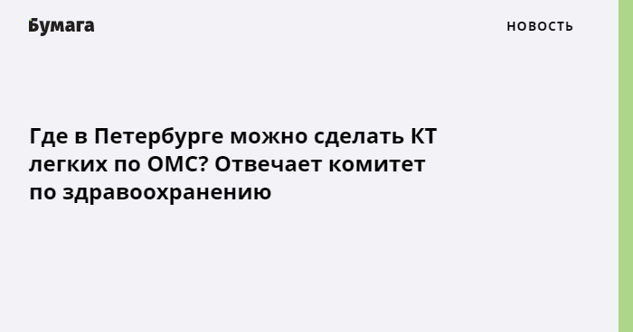 Комитет по здравоохранению назвал девять центров, в которых петербуржцы могут сделать КТ легких бесплатно по ОМС. Список приводит издание Piter.TV.