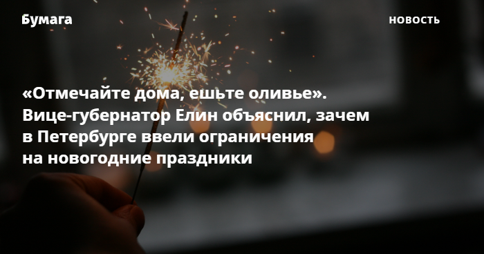 На вопрос о компенсациях владельцам заведений, которые не смогут работать в новогодние праздники, Елин ответил, что «есть еще 360 дней» и «на каждый чих не наздравствуешься». Вице-губернатор отметил, что правоохранительные органы и сотрудники комитетов будут проводить рейды по барам и ресторанам.