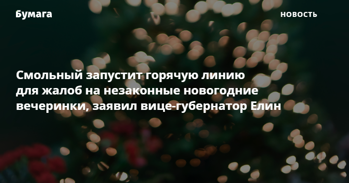 Смольный запустит горячую линию для жалоб на незаконные новогодние вечеринки, заявил вице-губернатор Елин