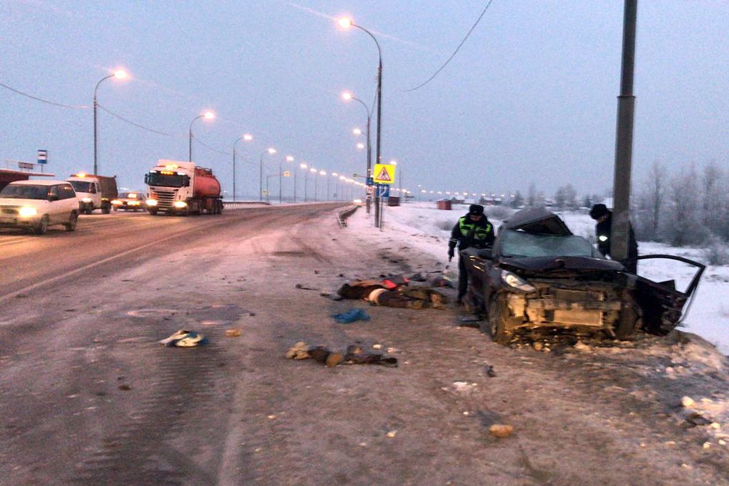 Двое погибли во влетевшей в столб иномарке под Новосибирском. Фото