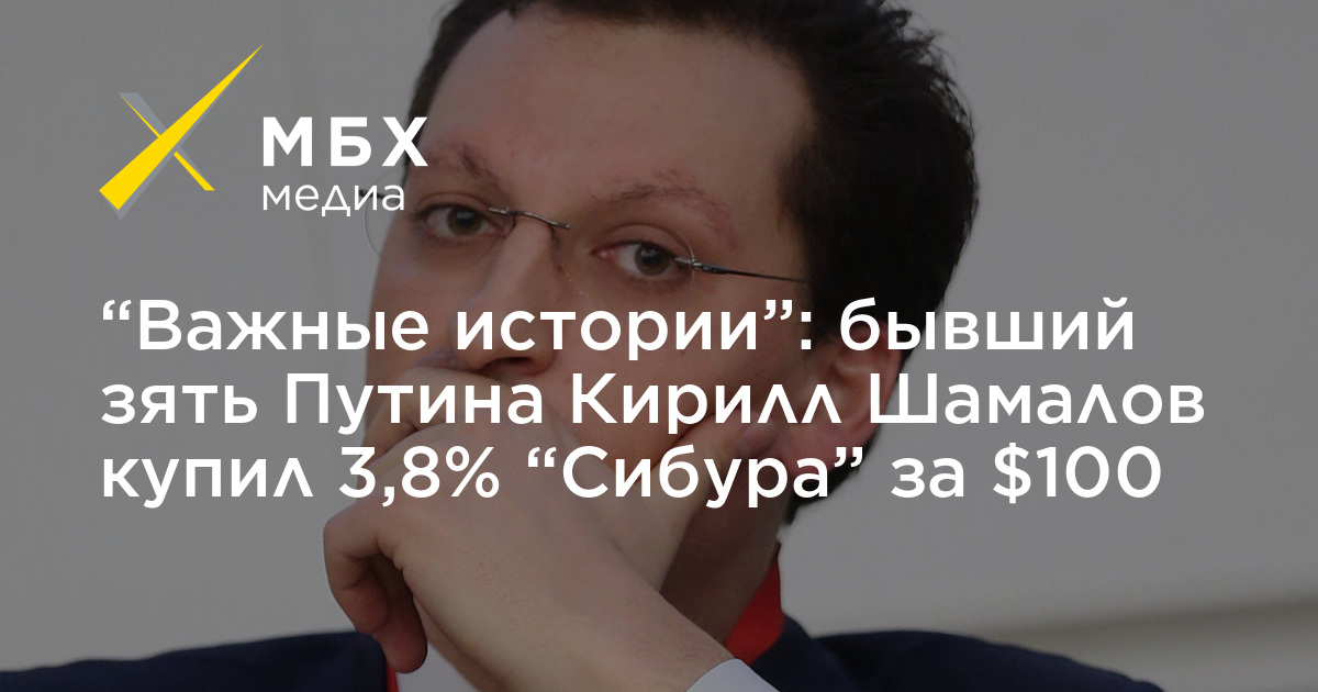 «Важные истории»: бывший зять Путина Кирилл Шамалов купил 3,8% «Сибура» за $100