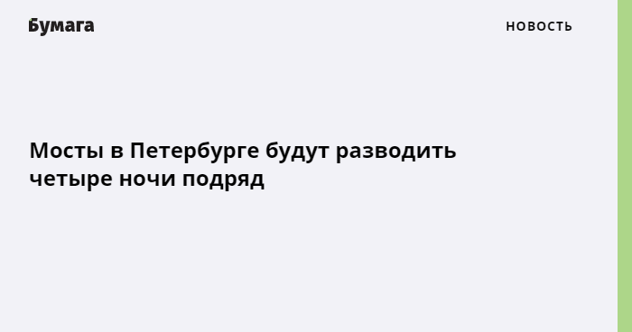 В Петербурге с 7 по 11 декабря по ночам будут разводить мосты, несмотря на закончившийся сезон навигации. Об этом сообщает пресс-служба «Мостотреста».