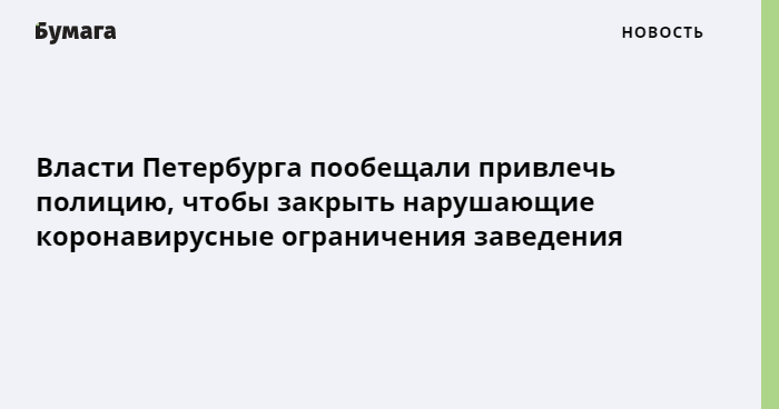 Власти Петербурга также ввели новые ограничения в городе. В новогодние каникулы не будут работать музеи, театры и концертные площадки, а с 30 декабря по 3 января закроются бары и рестораны. Подробнее — в материале «Бумаги».