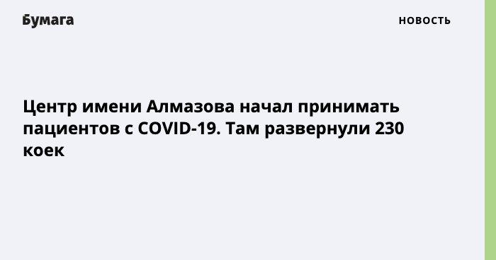 Центр имени Алмазова начал принимать пациентов с COVID-19