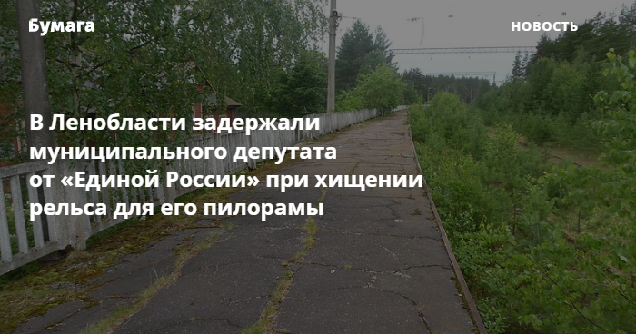 По факту хищения проводится доследственная проверка. СК не называет имени задержанного депутата, но 47news пишет, что это Евгений Будаев, баллотировавшийся от «Единой России». Будаев признался изданию, что действительно забрал рельс из леса, но отметил, что он был подержанный и не принадлежал «РЖД». Конструкция нужна была депутату для строительства пути к его пилораме.