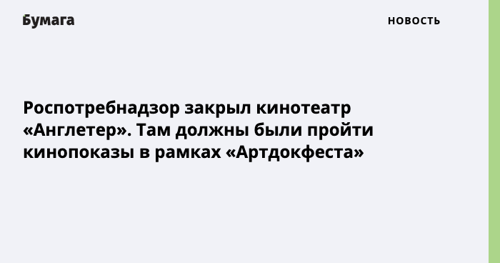 Петербургский Роспотребнадзор закрыл кинотеатр «Англетер», где должны были состояться показы фестиваля документального кино «Артдокфест». Об этом на своей странице в фейсбуке сообщил президент фестиваля Виталий Манский.