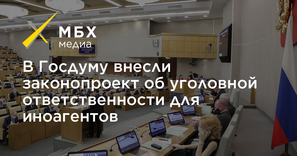 Депутаты Госдумы внесли в парламент законопроект, предусматривающий уголовную ответственность для руководителей НКО, а также физических и должностных лиц, выполняющих функции иностранного агента. Документ опубликован в базе Госдумы.