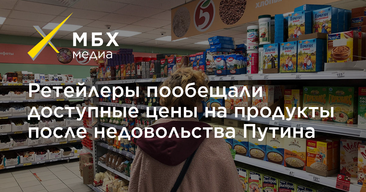 Ретейлеры пообещали доступные цены на продукты после недовольства Путина