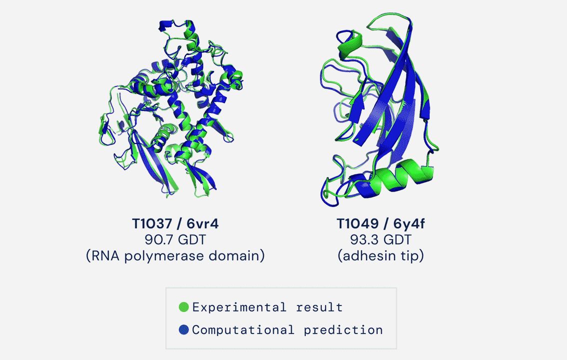 Когда структура все-таки была получена, в конце зимы 2020 года, Петр Лейман, руководитель лаборатории, где Мария билась с решением проблемы белка на своем участке фронта, отправил последовательности нескольких изучаемых белков (в том числе phi14:2 и AR9 полимераз) на конкурс CASP14. Это традиционное соревнование алгоритмов, занимающихся предсказанием структуры по аминокислотной последовательности. Именно в нем в этом году победила созданная командой DeepMind программа AlphaFold2, оставив далеко позади всех конкурентов.