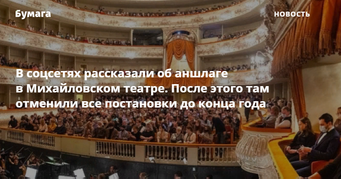 В соцсетях рассказали об аншлаге на балете «Золушка» в Михайловском театре. После этого руководство театра объявило об отмене всех постановок до конца года.