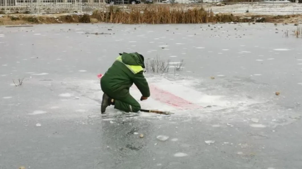 Надо сказать, давая подобные задания своим рабочим, жэсовские начальники откровенно толкают их на риск. Лед не везде достаточно прочный, чтобы ходить по нему было безопасно. Но, видимо, задание партии превыше всего.