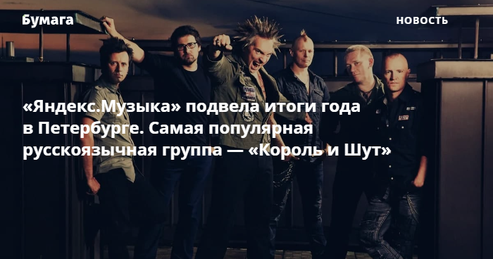 Самой прослушиваемой русскоязычной группой в Петербурге стал коллектив «Король и Шут», иностранной — Rammstein. Самыми популярными певцами назвали рэпера Макса Коржа и The Weeknd, среди исполнительниц петербуржцы чаще всего слушали Zivert и Билли Айлиш.