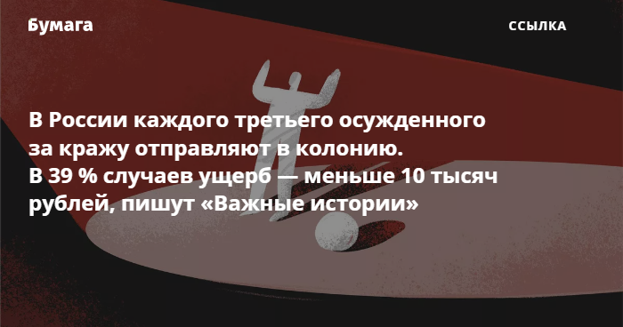 Издания «Важные истории» и «Четвертый сектор» выпустили исследование о том, как россиян судят за кражи. Прочитать его можно здесь.