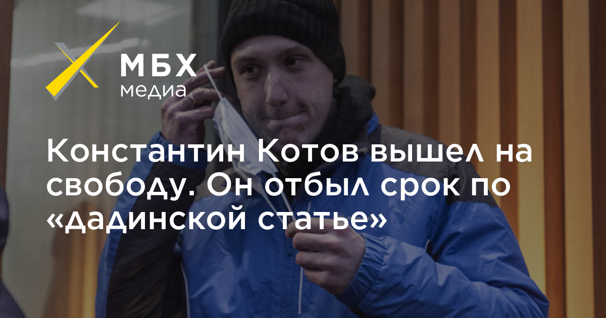 Котов пробыл в заключении 493 дня и полностью отбыл наказание в 1,5 года лишения свободы, которое ему назначили в апреле. До этого ему отказали в условно-досрочном освобождении — он мог выйти на свободу на неделю раньше.