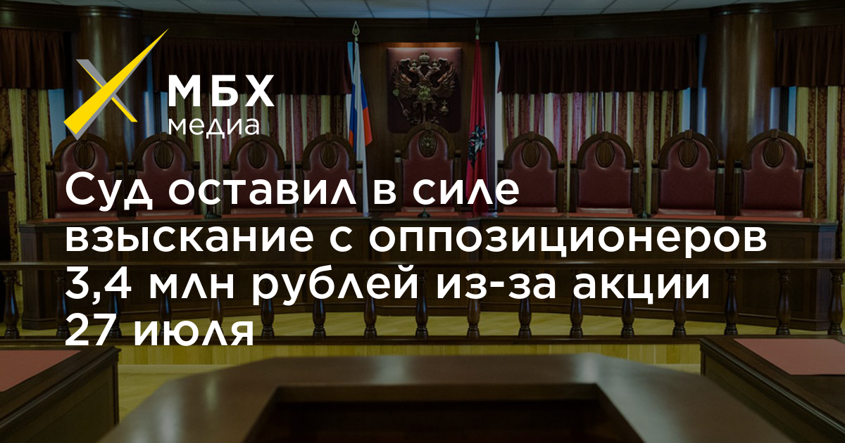Суд оставил в силе взыскание с оппозиционеров 3,4 млн рублей из-за акции 27 июля
