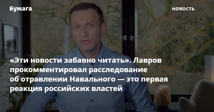 Министр иностранных дел России Сергей Лавров заявил, что новости об обстоятельствах отравления Алексея Навального «забавно читать». Это первая официальная реакция российских властей после выхода расследования о том, что Навального могли отравить оперативники ФСБ.