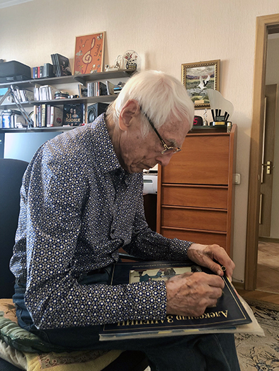 Когда война кончилась, нам сразу отпуск на месяц дали, и я уехал в Новосибирск. Один музыкант, который вместе со мной в Тюмени был, мне посоветовал: «Ты купи кларнет и поучись месяц, что ты будешь бегать с винтовкой». Я приехал в Новосибирск, купил кларнет, ходил к педагогу заниматься. Хорошо, что я уже на саксофоне пробовал: я уже знал, в чем дело. Но все равно кларнет — более трудный инструмент. А потом купил аккордеон. Такой средний. И на нем часа по четыре — на этом, на том, на этом, на том. За месяц я освоил левую руку — там же левая рука другая, не фортепиано. Потом приспособился — уже на нем играл все фокстроты, танго и прочее, что нужно для танцев. Когда приехал в училище, я сразу пошел в музвзвод и сказал, что играю. Мне сказали: «Сыграй». Я сыграл какую-то гамму. «Так, а ноты знаешь?» Я говорю: «Школу окончил музыкальную, на пианино играю». И потом пошел в клуб к капитану Барабанову и говорю, что играю на рояле, на аккордеоне и еще я киномеханик. Я окончил курсы тракториста и киномеханика, пока в школе учился. Зачем — не знаю. А до этого я сам сделал узкопленочный кинопроектор из стальной линейки.