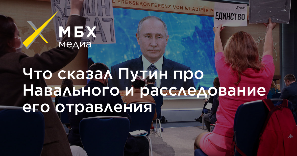 Журналисты британской BBC и российского портала Life в ходе ежегодной пресс-конференции задали Владимиру Путину вопросы о том, почему до сих пор не возбуждено дело по поводу покушения на Алексея Навального, а также о его возможных отравителях. Публикуем полные ответы президента.