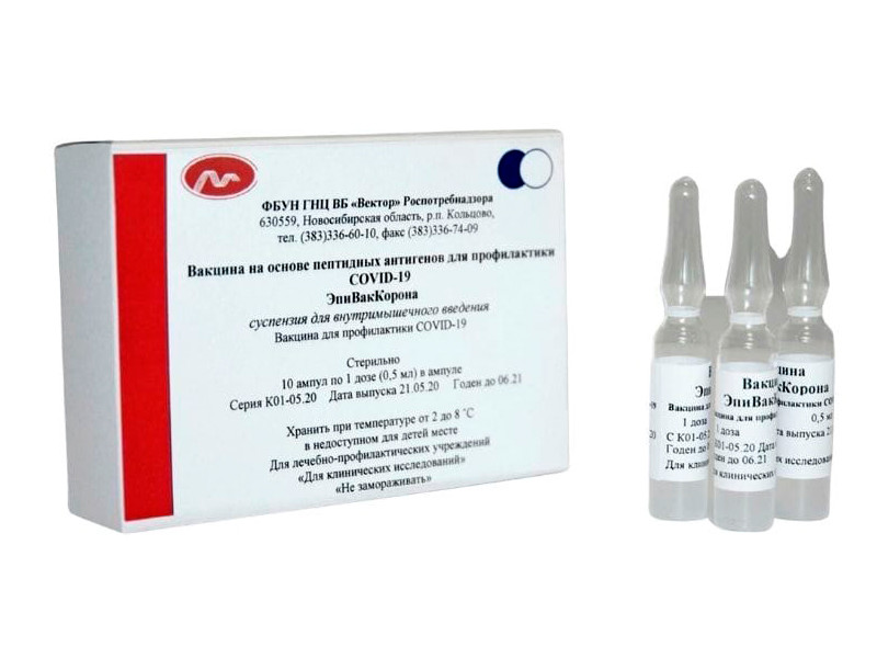 Российская вакцина "ЭпиВакКорона" была зарегистрирована 14 октября и стала второй вакциной после Sputnik V. Предполагается, что до конца 2020 года будет выпущено 50 000 доз вакцины "Вектора": 5000 пойдут на исследования, оставшиеся будут вводиться в гражданский оборот. Массовое производство вакцины запланировано на начало 2021 года.