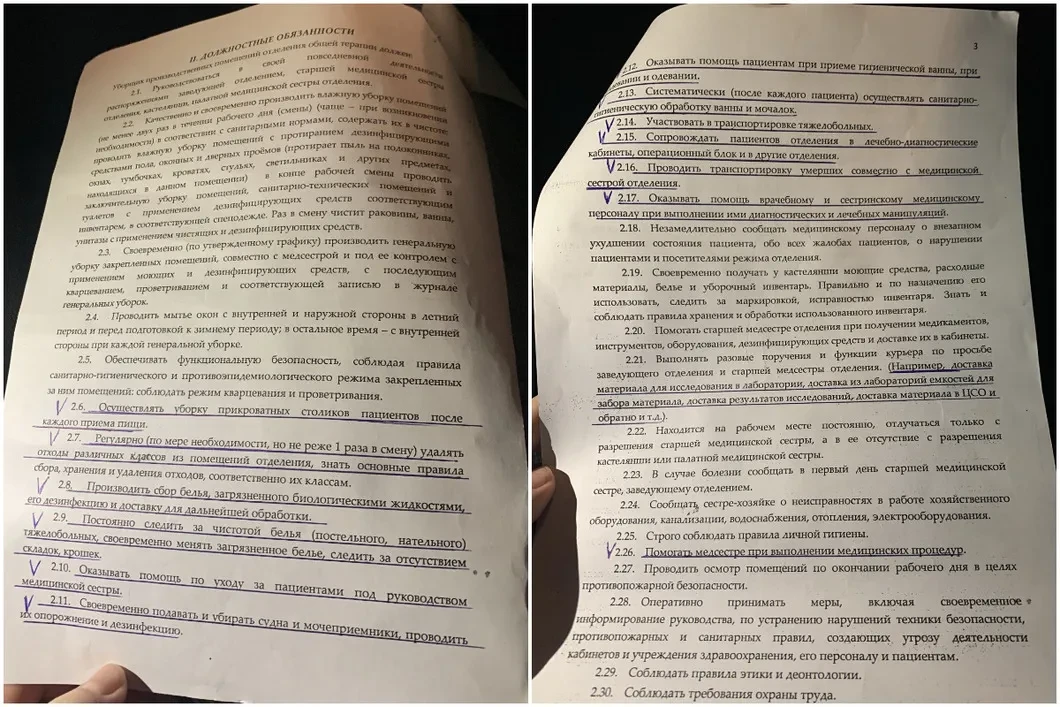 «У нас нет ставки санитара с 2018 года, а есть должность "уборщик производственных помещений". В свое время руководители больницы убрали должность санитара в целях экономии средств и перевели всех санитаров в уборщиков. В обязанности входят уход за пациентом, сопровождение на процедуры, перестилание коек и обработка палат.