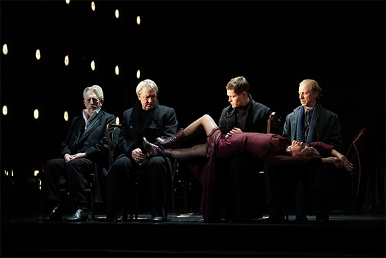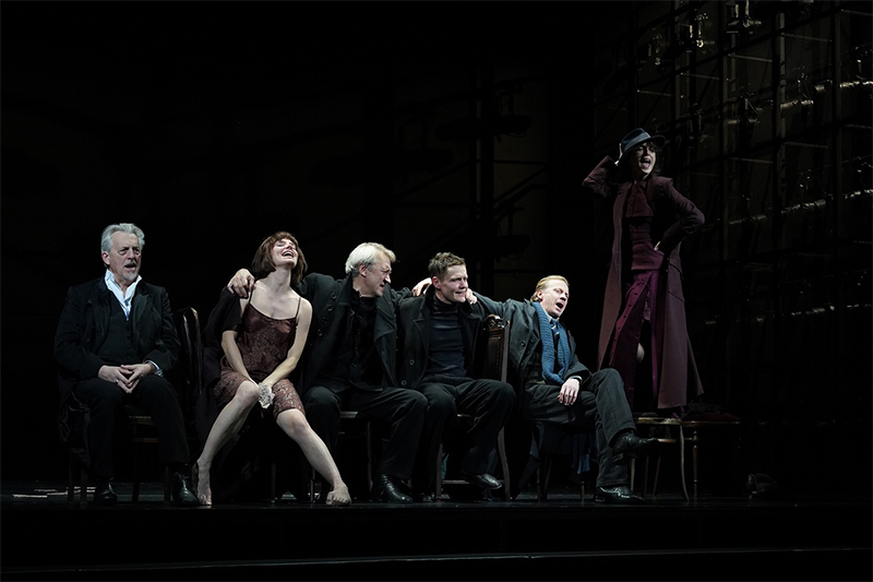© МДТ — Театр Европы На какое-то мгновение кажется, что свет софитов перемещается в зрительный зал, проясняя наше с Карамазовыми родство, — и не они, но мы высвечены особым, печальным и радостным светом мистерии. Катерина и Груша запевают, Карамазовы подхватывают, и вот уже бравурно и радостно разливается по театру «Раскинулось небо широко»… Подальше от грешной земли.