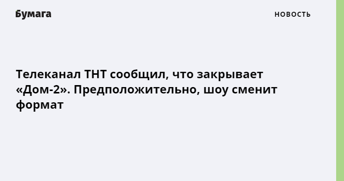 Телеканал ТНТ сообщил, что закрывает шоу «Дом-2», которое показывали с 2004 года. Об этом пишет ТАСС со ссылкой на пресс-службу компании.