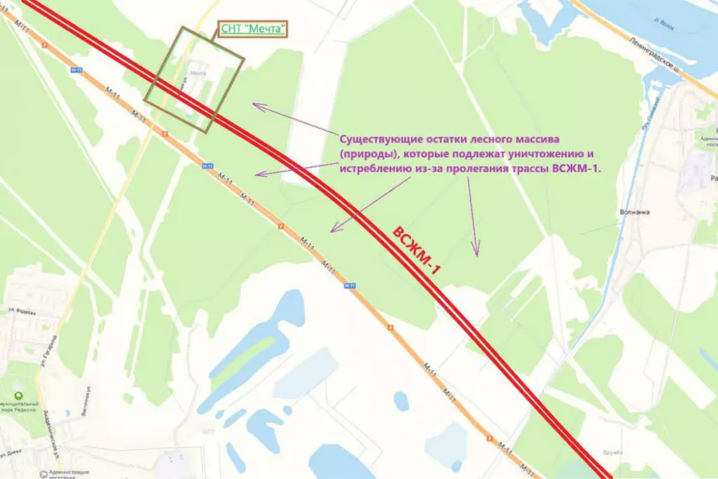 Одними из первых о скором приходе к ним в дом ВСМ узнали дачники СНТ «Мечта», который находится в поселке Редкино Конаковского района. Узнали почти случайно — от геодезистов РЖД, встреченных ими рядом с поселением. Владельцы домов и участков в этом СНТ и жители других населенных пунктов выяснили, что администрация Конаковского района согласовала проект прохождения железной дороги по территории района — кроме как раз того участка, на котором магистраль должна проходить по садоводческому товариществу. Однако, несмотря на отказ местных жителей согласовать маршрут через территорию СНТ, на ней начались геодезические изыскания.