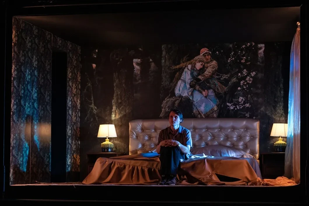 — Когда ты понимаешь, что надо донести основополагающие вещи, и в коммуникации со зрителем преодолеть штампы восприятия, которые возникли, например, после фильма с Вициным и Мордюковой, приходится искать какие-то пути. Например, не строить забор, через который перелезает Бальзаминов к богатой невесте, а возвести такой «блочный дом», в каждом пространстве которого разыгрывается своя история. Та же история с башмачником, под видом которого Бальзаминов у автора приходит снимать мерки с сестер, и потому его пускают в дом, закрытый для мужчин, тоже выглядела для меня как вопрос. Поэтому башмачника мы заменили на сантехника. Началось с желания эту историю оптически приблизить к нашему времени, компактно собрать в единую структуру. Я с самого начала понимал и хотел, чтобы люди разговаривали не раскатистым переливчатым языком, знакомым нам по Малому театру, а современно. Присутствие множества анахронизмов должно было раствориться за счет точности и правдивости сути в этих диалогах. Наши прекрасные артисты Камерного театра стали сначала говорок такой старомодный пробовать. А это было совсем ненужно. И я предложил поставить камеры и посмотреть на себя со стороны. Это было сделано только для того, чтобы добиться достоверности, уйти от наигрыша. Это артистам здорово помогло. И когда мы увидели на мониторах крупным планом сцены, у нас возникло желание это оставить. Мой сын — Алексей Бычков — имеет опыт и образование оператора. И он стал полноценным участником спектакля, постановщиком этого видеоряда. Наши техники освоили онлайн-монтаж. Я восхищен, как монтируются планы по ходу спектакля.
