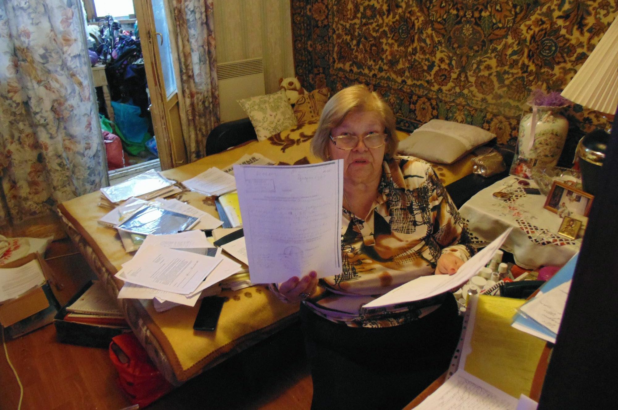 «Бывает, ночью просыпаюсь, думаю, какой закон надо применить и в какую инстанцию еще написать», — признается 78-летняя пенсионерка. В углу комнаты иконостас: лики святых стоят вместе с фотографиями членов семьи, мужа и сына. Они мертвы, сын умер от инсульта в 58 лет, муж — от осложнений, связанных с плесенью, которая завелась в этой квартире 22 года назад.