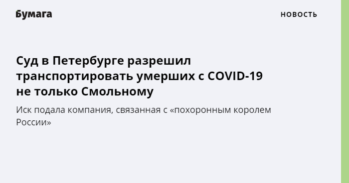 К перевозке умерших с COVID-19 допустили конкурентов Смольного