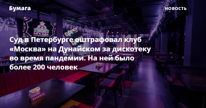 Суд в Петербурге оштрафовал клуб «Москва» на Дунайском за дискотеку во время пандемии