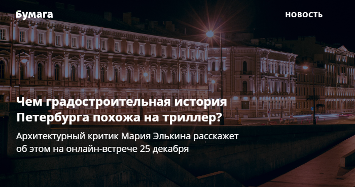25 декабря Мария Элькина расскажет об архитектуре Петербурга