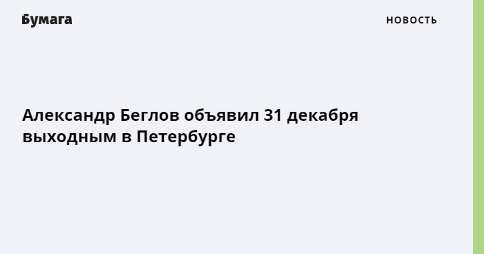 Александр Беглов объявил 31 декабря в Петербурге выходным днем. Об этом сообщается на официальном сайте администрации города.