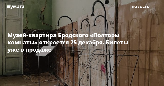 Музей-квартира Иосифа Бродского «Полторы комнаты» на Литейном проспекте откроется для посетителей после реконструкции 25 декабря. Об этом сообщается на странице учреждения в инстаграме.
