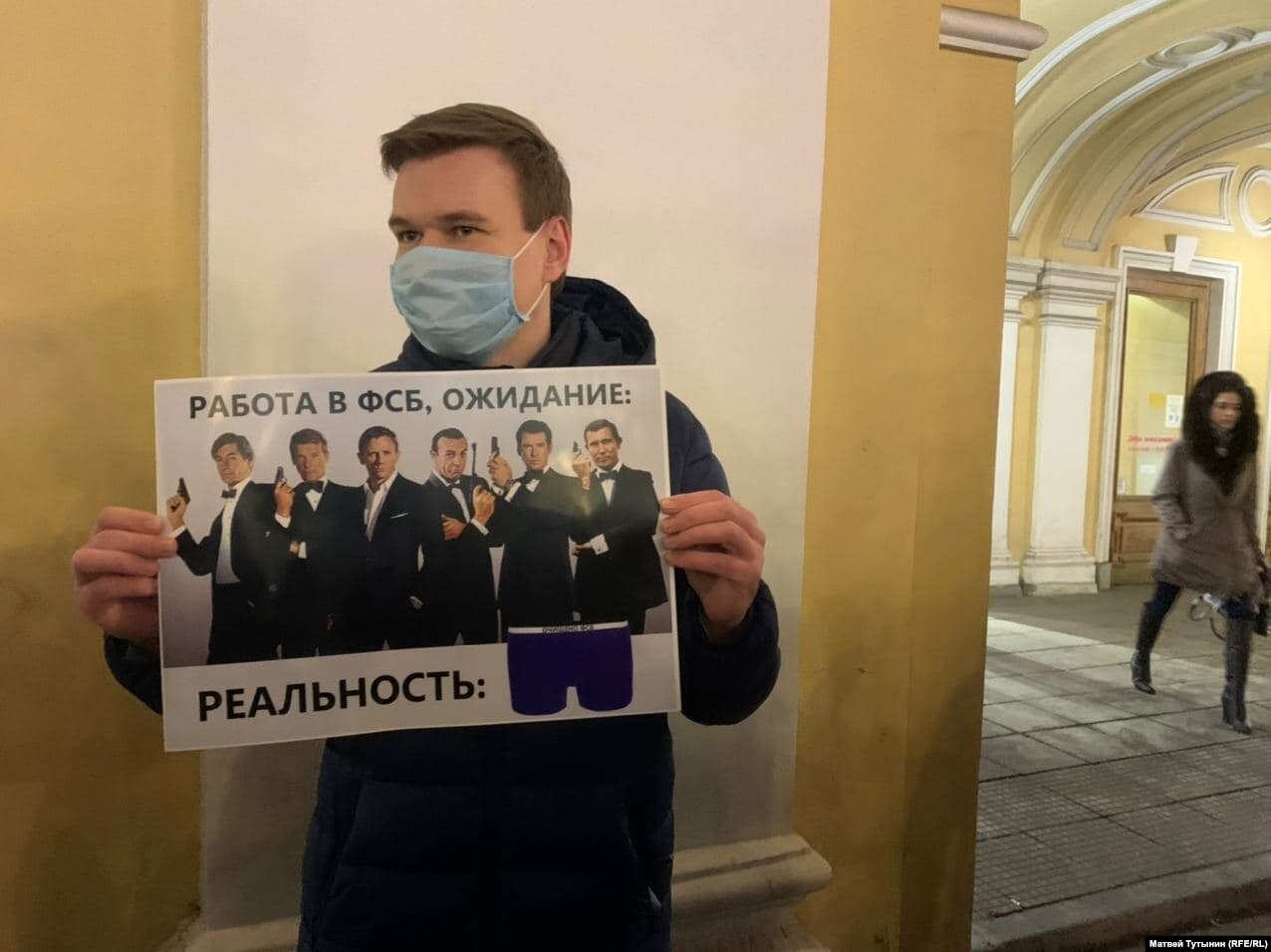 В Петербурге у станции "Гостиный двор" прошли пикеты в поддержку основателя Фонда борьбы с коррупцией Алексея Навального. Активисты призывали расследовать попытку отравления политика, в которой могут участвовать сотрудники ФСБ. Об этом сообщает корреспондент сайта Север.Реалии.
