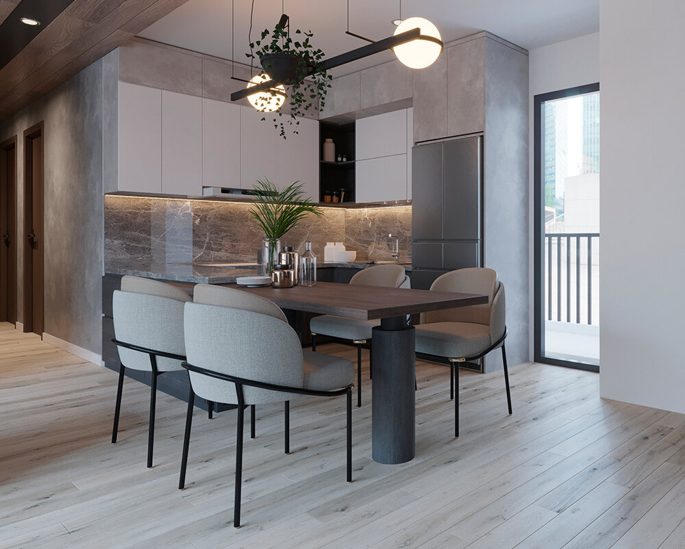 Это напольное покрытие легко отмывается обычными бытовыми средствами, абсолютно не поглощает воду, полностью влагостойкое и не разбухает, поэтому легко переносит даже ежедневную уборку. Каменный ламинат способен сохранять тепло и легко прогревается, не пропуская холод, поэтому совместим с теплыми полами и работает как утеплитель для бетонной стяжки. Благодаря высокой плотности и повышенной звукоизоляции, имеет ударостойкие и шумоподавляющие свойства, что обеспечивает комфортное проживание и долгий срок службы материала. Невосприимчивость к ультрафиолетовым лучам гарантирует стойкость цвета на многие годы.