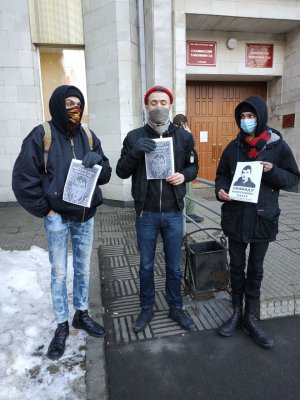 В Москве рядом с Головинским районным судом задержали трех участников пикета в поддержку математика и анархиста Азата Мифтахова. Об этом ОВД-Инфо сообщили очевидцы.