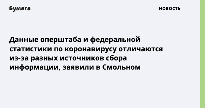 Данные оперштаба и федеральной статистики по коронавирусу отличаются из-за разных источников сбора информации